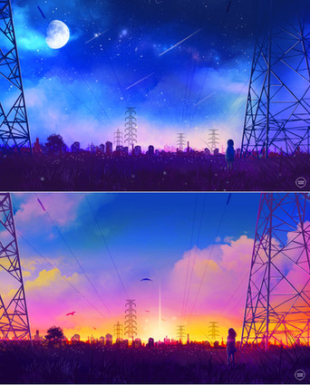 I really like the concept of this piece, that's very interesting combined with the dreamy mood of it. The sillouette of the invisible figure seems a bit weird though; maybe because one of their arm is not showing. As for composition I feel there's too much negative space on the left and the white line on the sky is a bit off too - I think it could look better if it was more soft (less atention drawing) and pointing to the opposite direction.Β