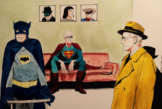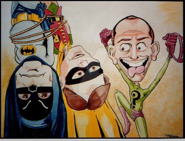 Here's an old assignment that I did at the Joe Kubert School of cartoon & Graphic Art back in 1990. I love the old Adam West Batman TV show, so I got a chance to draw this for my Humor & Caricature class. It's all done with india ink and Dr. Martin Dyes.Doug Baron