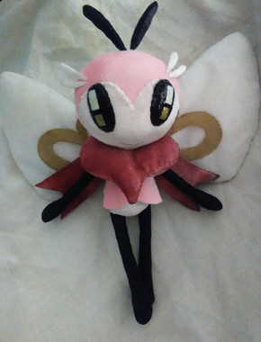 I actually didn't think I'd like Ribombee at first, but the design has really grown on me since the game came out! :0 You've captured it's adorable and kind of fairy-like appearance so well, especially in its eyes! The detail of the embroidery on the wings is awesome, too. :> I love all the colors of minky that you chose for it, it really pops the against the pink of the background especially.