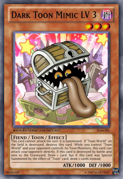 Cannot attack the turn it is Summoned. If "Toon World" on the field is destroyed, destroy this card. While you control "Toon World" and your opponent controls no Toon monsters, this card can attack your opponent directly. When this card is Normal or Special Summoned: You can add 1 "Dark Mouse" from your Deck to your hand.Original Artwork from Konami Co., Ltd. / Yu-Gi-Oh! TRADING CARD GAME