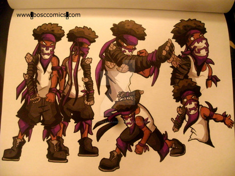 Character design often involves multiple drafts for a character's look and outfit. I literally awoke this morning to Jerrod Smith backhanding me and saying "Draw him again, boy...and get it right!!!"So, with a swollen blackeye, I re-drew the "crazy nigga with a brick". The left design was my first attempt.....more of a street design.......the design on the right was the route we decided to go with.......crazy as #$%@.