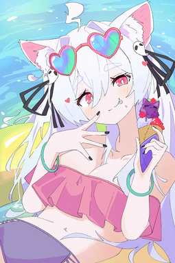 Pusherra1Meow - Catgirl Swimsuit AI Art Wallpaper (DreamUp) [🤖]