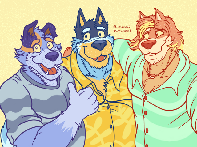 #anthropomorphic #bluedog #bluey #cartoonart #cartoondrawing #celshading #complimentarycolors #cutedogs #digitalart #digitaldrawing #flatcolors #orangedog #dogfamily #furryfamily #cartoonfamily #disneyjunior #blueyfanart #blueyheeler #bingoheeler #banditheeler #chiliheeler #bluey_fanart