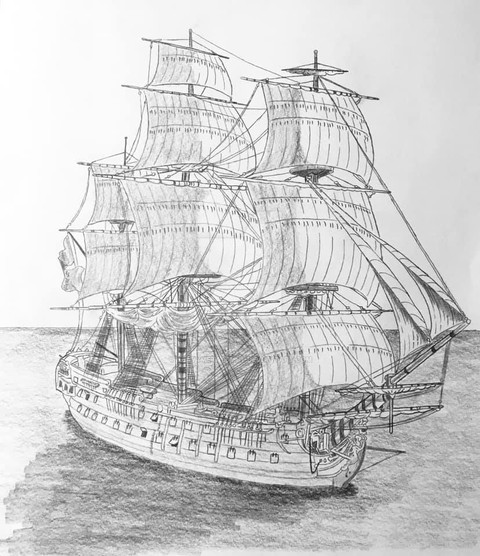 I will never, ever, stop loving the Age of Sail.Sorry, no background on this one. I just really wanted to draw a sailing ship and work with ink again