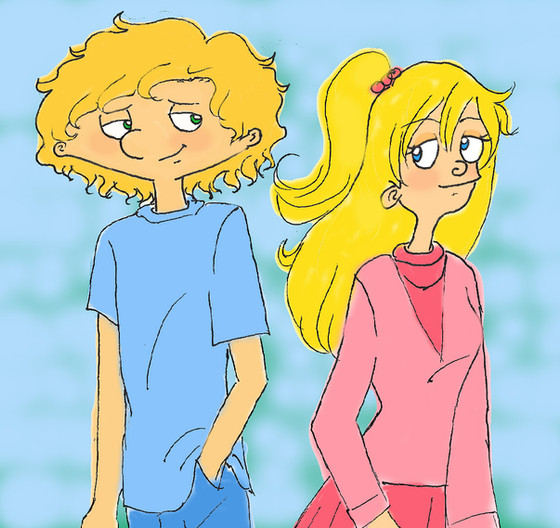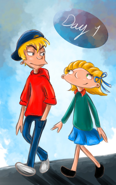 Arnold is shy.. aw ^^At first I was just drawing Helga.. And I was thinking.. how should she pose? And I ended up with that pose xD (poses are really hard to draw btw) And she looked kinda weird by herself so I thought "OH! I'll just add Arnold, doi!" xD And it became like this..