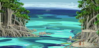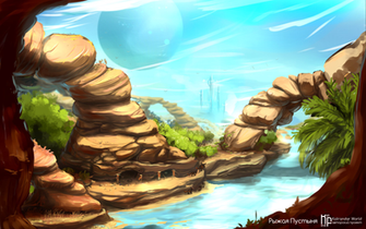 "Umbarrah" is the name of all known world... which is actually restricted a territory the size of an average European country, where the delta of enormous River is located. Bordered by the mountains to the north, sea to the south, desert to west, and swamps to the east, it`s covered in dense jungle (with savannah separating it from the desert). Having hot and humid climate, it`s populated by amphibious creatures of all shapes and sizes, weird multi-eyed insectoids, and ship-like aquatic animals. It`s a rich, vibrant tropical land, but also deadly and unforgiving.