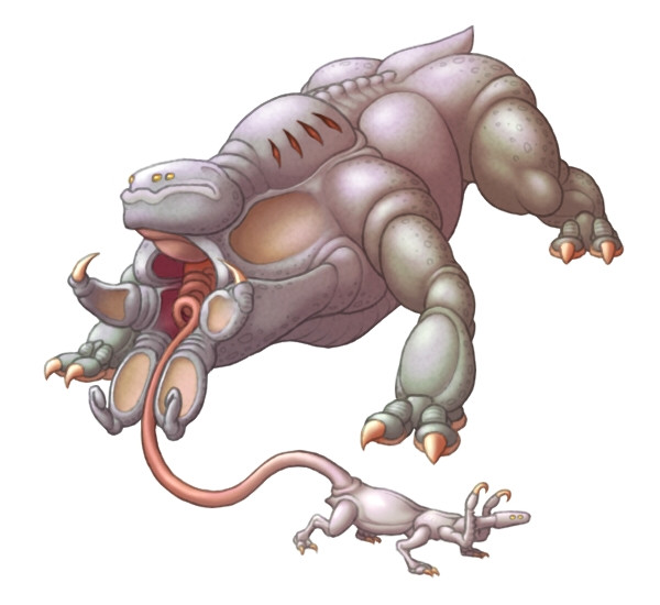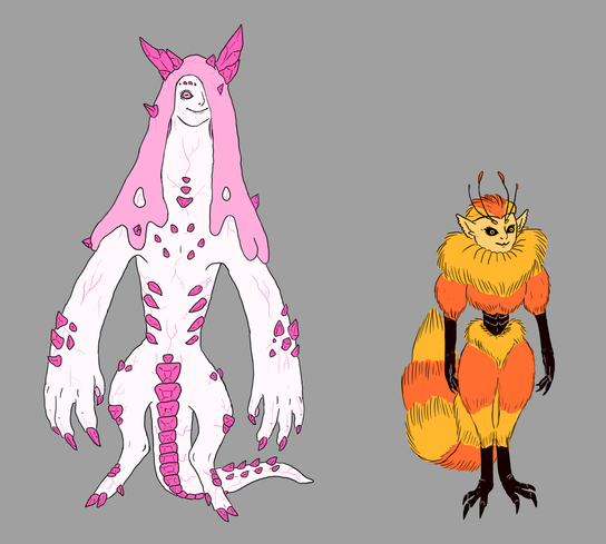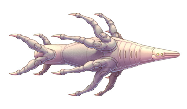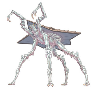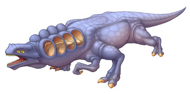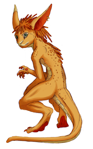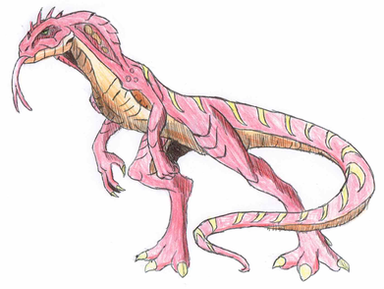 Migdalorus torridusA 6 m long (about 3.5 tall in vertical position) carnivorous, social (in a way) partially endothermic savannah "reptile" with great eyesight and even greater radars, and an impressive intelligence (probably comparable to dolhpins).