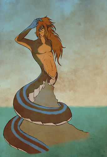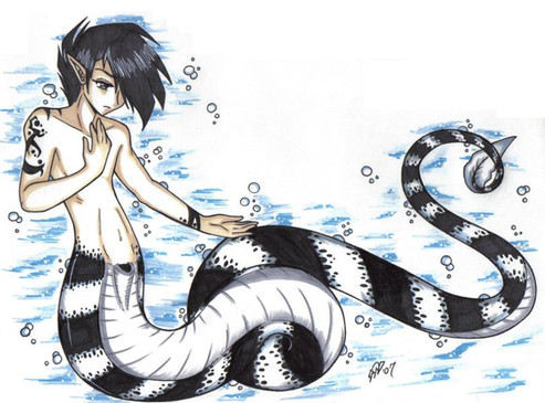 how in the frickledy frack have I not uploaded this yetThis is Kahl, my eelmaid, (eelman??) just chillin in the water. I wanted to do some tropical-looking water, and then this happened.