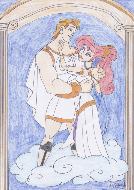 I just thought I'd have a little fun and draw a scene of Hercules being protective over Meg. Exactly what he's protecting her from, I'll let you imagine for yourselves.(P.S. You can thank my dad for the title. He saw the drawing, and when he mentioned that Meg looked like she was getting surprised from behind, I decided to roll with it. )