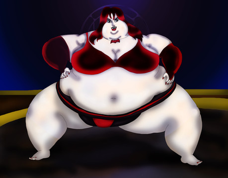 Known simply as "The Belly" to her friends and opponents (see if you can guess why) the 23 years of Gothika's life have always centered around her weight. Leaving school due to boredom and her stomach's inability to fit through the double doors, Gothika's girth and interest in the darkly unusual found her a job at a traveling freak show as "The Human Bouncy Castle", simply eating herself massive while dozens of children bounced on her bulging blubber. One day a couple of bitchy cheerleaders made fun of her weight, prompting her to "accidentally" trip on top of them, encasing them in almost 2 tons of belly fat. The full-body casts will be off in 6 months, and Gothika went on to engage a world-famous female metal vocalist, but the sweet sounds of their bones crunching beneath her fat, and the feeling of erotic power it gave her brought Gothika to our doorstep seeking victims for her squashing addiction. And thus..."The Belly" became a star.Related content