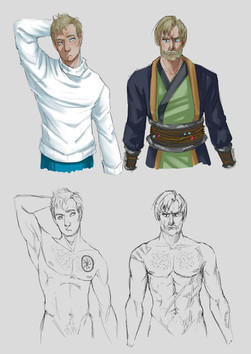 I like how he's a bit of a Jack-of-All-Trades, blessed with the families muscular build (and probably gets a lot of training done, too) but without the general knowledge of how to use his fists for punching; he's got much better things to do than punching - like leather working (which is so cool! )