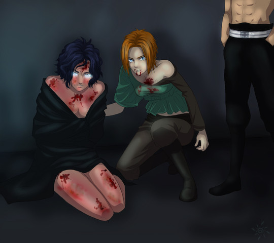 "Get of of my sight, Grimmjow." She had already dropped to her knees next to the barely-conscious redhead, her hand hovering over the blade impaled in her.
