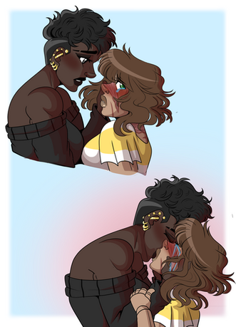 #couple #cute #digitalart #kiss #pairing #ghosttowns #lesbiancouple #wlw #joxel #jomori #eliotrios