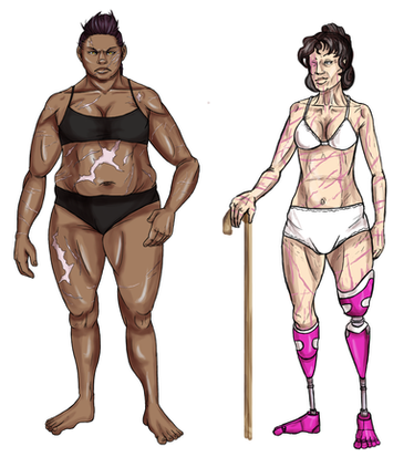 It sounds like Eliot has been through a lot in her life. I think she has a really interesting backstory, which gets the reader to "feel" for her and connect with her to some degree. I love her body type and her skin tones. The fact that each scar and tattoo tells a story about some event that happened in her life is a great idea and gives more depth to her character. Her expressions look amazing and I really get the sense that she is angry, sad or just fed-up with what life throws at her most of the time.