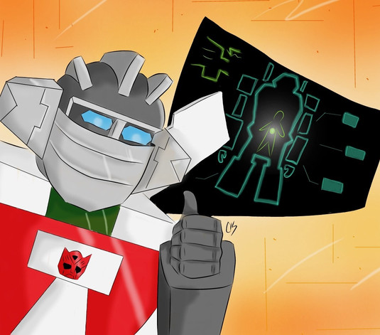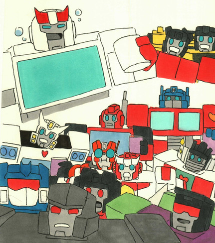 I apologize for all the weird themes I've got going on with my TF art, but there's still some more to go. I drew this already a couple of months ago, so I can't exactly remember the whole idea behind this, but on the sketch I had drawn was the title "Broken down" and a description "pieces being sucked into a nothingness".What I can tell it's Ratchet and Wheeljack. Damn it's been a while, since the last time I've drawn Wheeljack