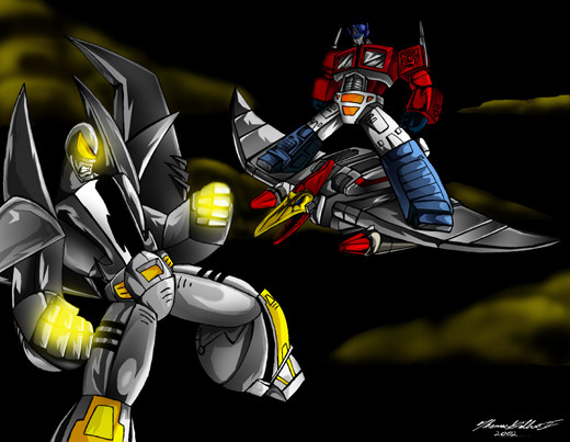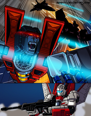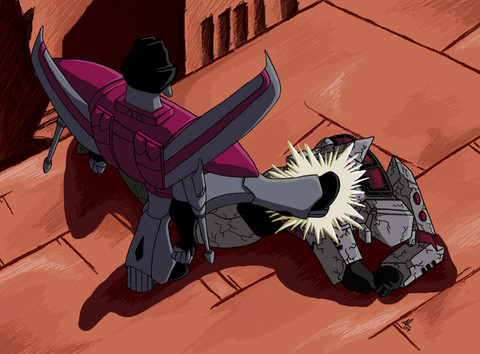 I also deliberately made Starscream look kinda silly with his arm flying off like that. I almost made him do cross-counter, but then I decided otherwise