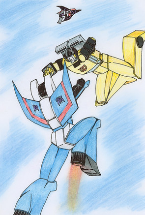 Starscream bellowed as he transformed and followed the golden twin.
