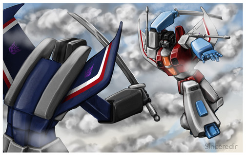 Starscream looks funny, but I really like the idea. Go Sunny! Kick his seekerass right into the sun!