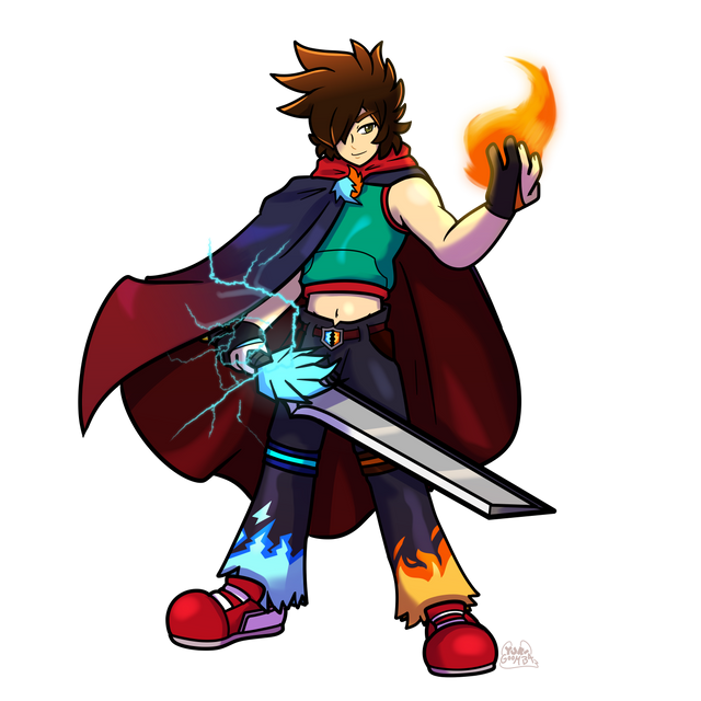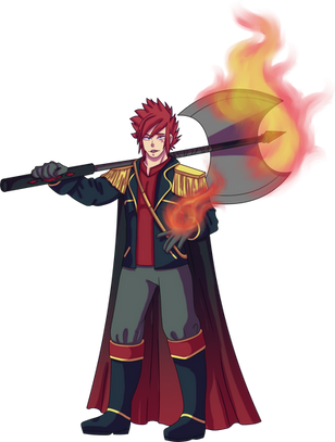 Duke the man with the power to summon the fires of the underworld with his spear.Drawing and Duke belongs to me