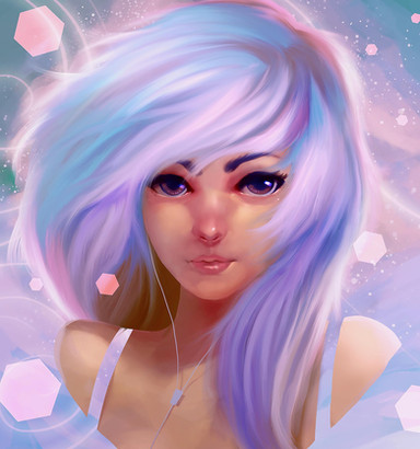 I think the signature under the chin is a little distracting. I like the vivid color, the smooth realism and the smooth hair strokes, also the freckles are a nice detail. Don't the lines around the headphones make it a little less "lineless" though?