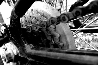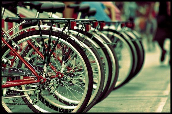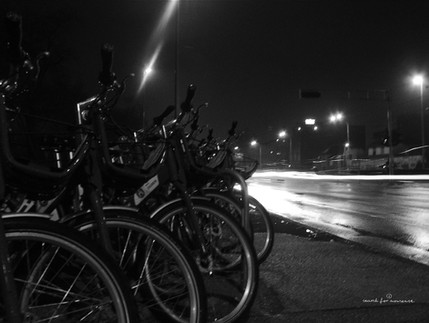 the repetition makes it look a little psychotic, but that's not a bad thing it's a very interesting shot. i like the contrast and detail, though i think maybe the cropping could be a bit better (maybe to give it more perspective or make it look like a longer line of bikes)