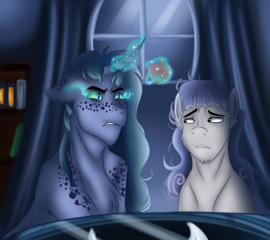 "And that was our first kiss, darling! Your mother had worked so hard to embed all of those lovely turquoises into the cave to enhance the romance. Ahh, I'll never forget those monotone words. 'The color of the turqoise remind me of your cutie mark. Blue ... and pretty.'! She has such a way of words." Rarity sighs blissfully, her cheeks flushing a rose tint."That's, uh, ... nice mom." Sapphire Light's lifts a corner of his mouth slightly, "But that doesn't answer my question of where ma had found all of those turquoises. "