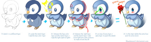 I colored in the colors he was, then I shaded it with the lighters colors then I used the darkers colors for it. Uhm.. its hard to explain... But if you need any help you an Note me and I'll help the best I can |D;;;