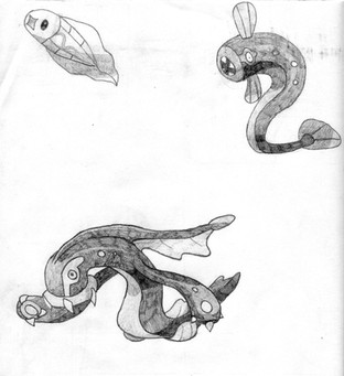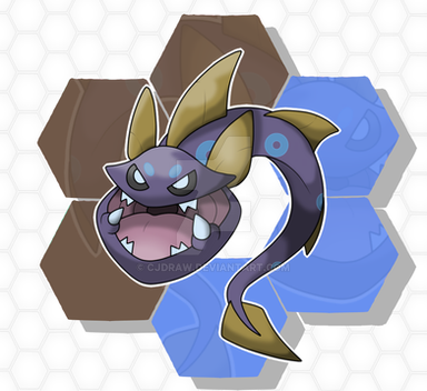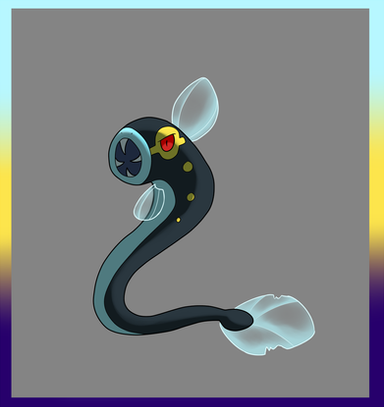 Enigmish swim through the abyss at breakneck speeds, their antenea and large fang-like structures under their chin sense their surroundings in the darkness. As quickly as it strikes, this Pokemon dissapears into the darkness again.
