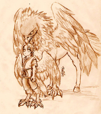 I listened and my heart ached, for all the children who have to live through those long nights, in fear and silence. If I could, I would rip through the fabrics of space and time, talons striking outward like black lightning, and I would save them all. So this is my drawing, my own contraption, I draw myself on their waiting page, show just how I would protect all those small and precious. I would scream my defiance - a hawk's scream telling all "Harm this child and face my wrath!" - and the flames of my anger would burn high.