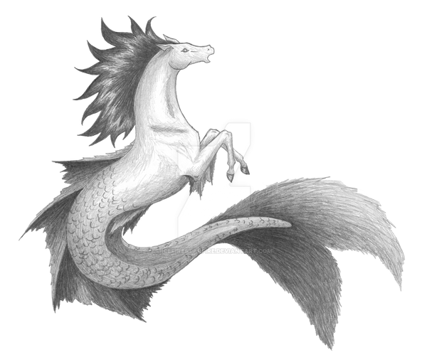 It is a being known for being part fish part horse, though the horse is more often the waist up and fish waist down with fins here and there. Kelpies are odd water like horses that are known to eat people. [link]