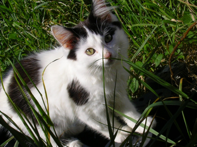 It is our kitten on the farm. She is called Shira. The reason why she got that name is because i looked in a book with pictures of many types of Koy. And than we saw a fish that had the same type of colors as her, and it was called Shiro. And to make the name sound a bit more girlish, we swiched the o, with an a XDShe is soo cute! we have an other kitten too, maybe ill submit a picture of her too, but the pictures of her isnt just as nice as this one :/ weΒ΄ll see.