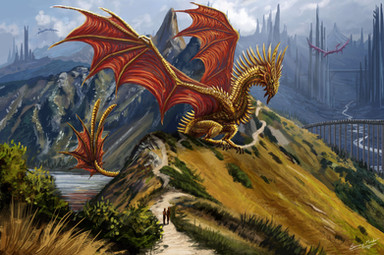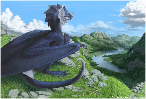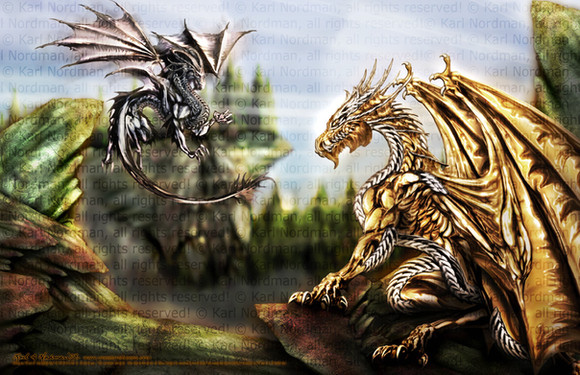 This is gorgeous; the background is as eyecatching as the dragons, and they seem perfectly at home.