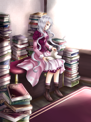 I love how the viewer's gaze is drawn by the lighter blue colors in contrast to the darker library tones. Awesome drawing!