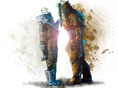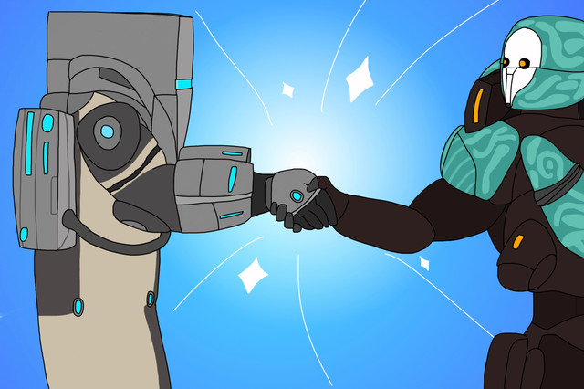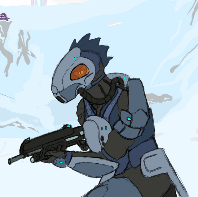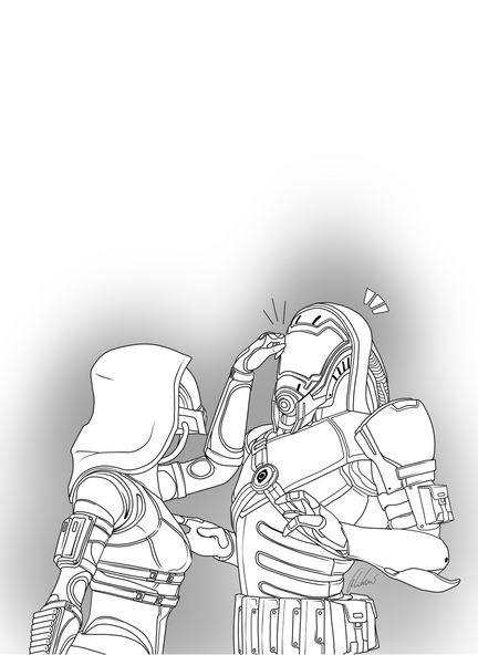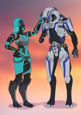 *Quarian looks behind self and sees the pictured geth, looks back to see the Legion-7 one has made a shelter*