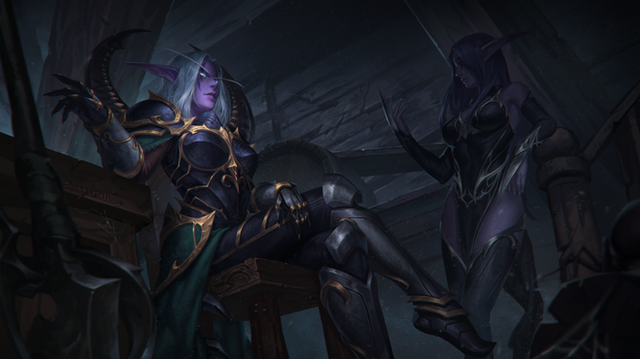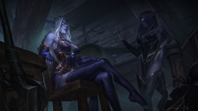 Super beautiul nightelf in a cool dress, hair and bed looking really good and cuddly too! +fav