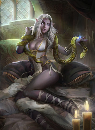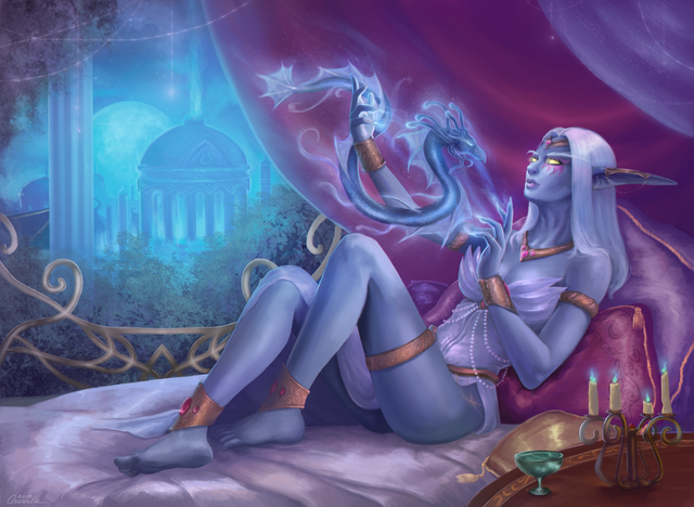 #elf #lady #laydown #magic #medieval #nightelf #sexy #warcraft #white #wizard #woman #commission #highborne
