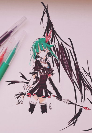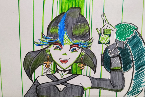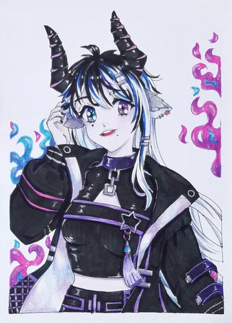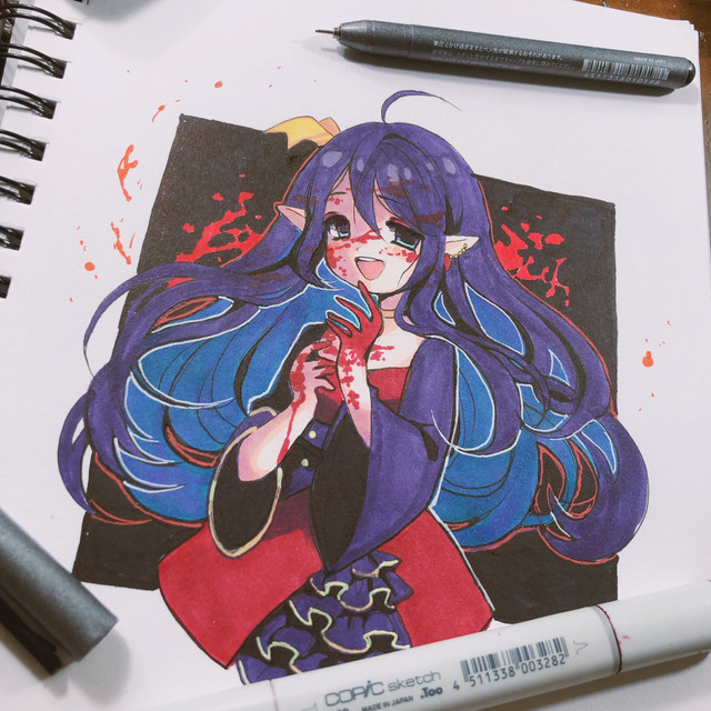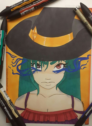 #fanart #videogamefanart #animedrawing #animegirl #traditionalart #animefanart #anime #portrait #originalcharacter #magic #copic #ghost #gijinka #gijinkapokemon #pokemon #traditional #chandelure #fire
