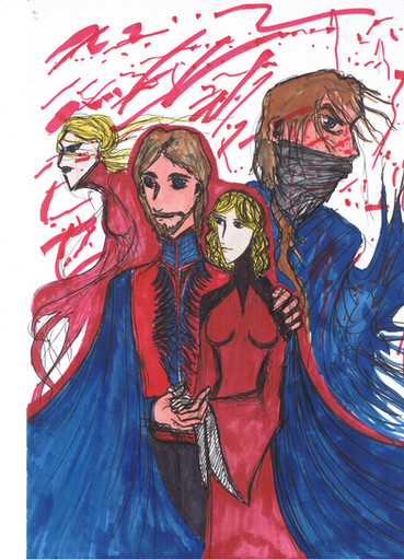 Okay, where to start. I think I'll go with the characters first. The one with the back turned is Nicolette and Dark Nic is obviously the creepy thing in the corner.
