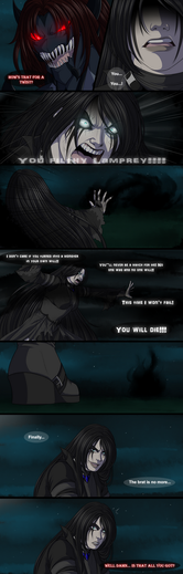 This page will look much better when you can read the page before it and the page after it in fairly quick succession. Cause it could look a little silly by itself...But that aside, I have got to say I absolutely love Mara's face in the first panel cause she doesn't look smug, or mocking or angry. She looks...Surprised but not scared.