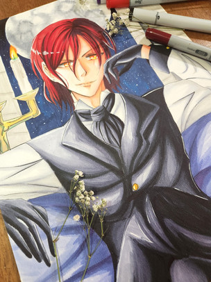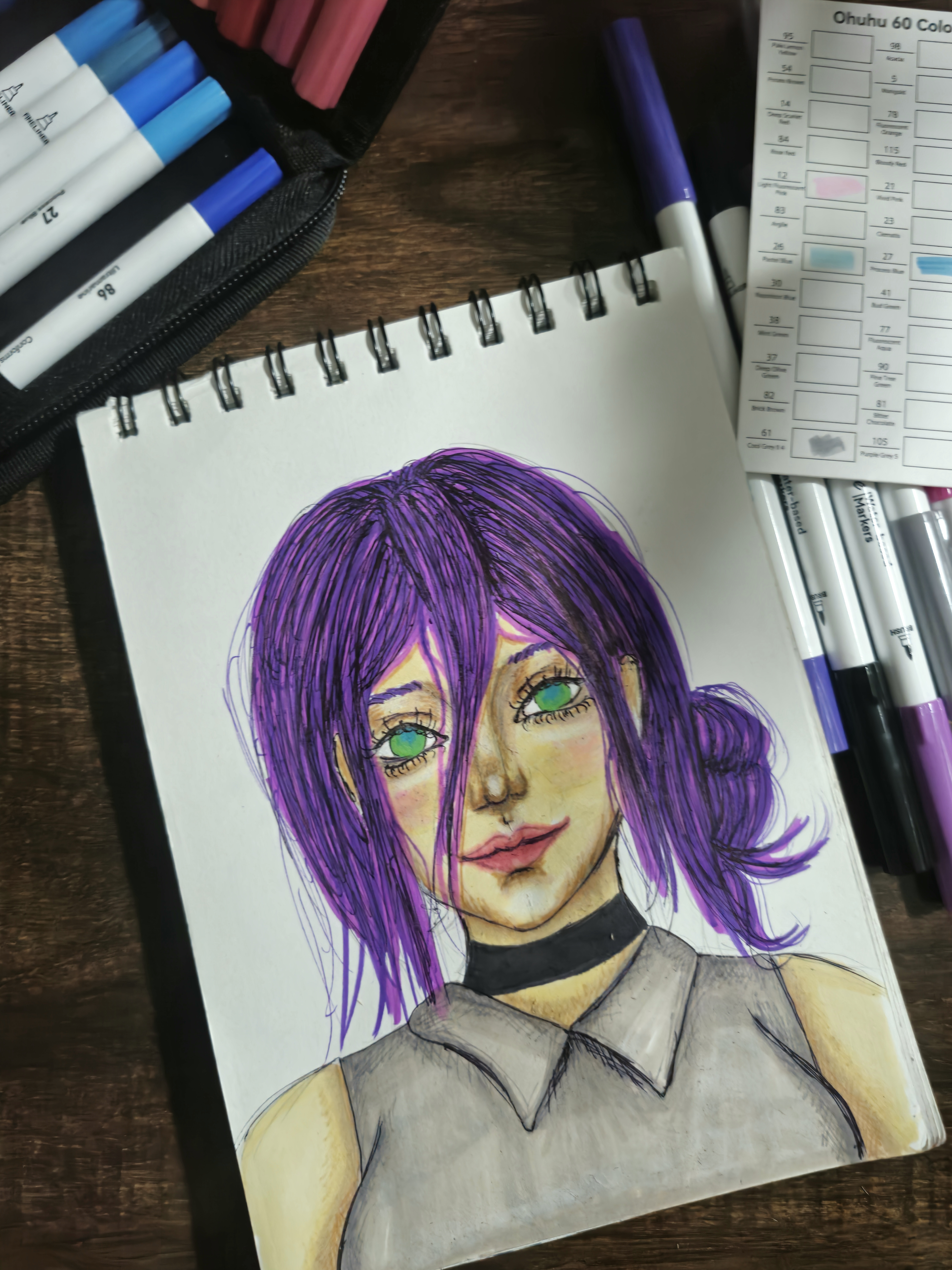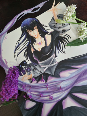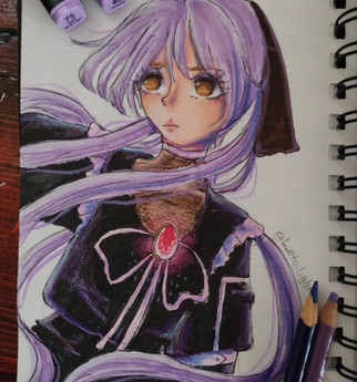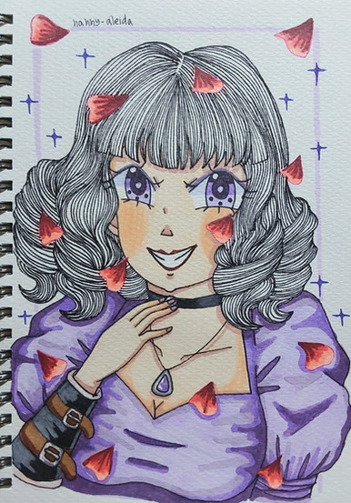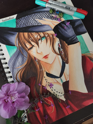 #anime #copic #copicmarkers #dress #flowers #gijinka #manga #moon #oc #originalcharacter #redeyes #traditionalart #purplehiar
