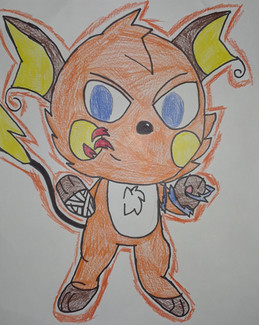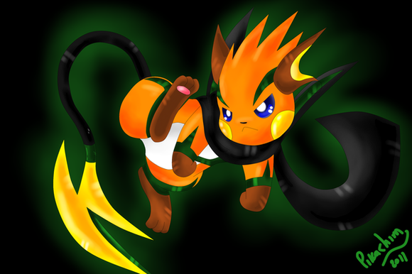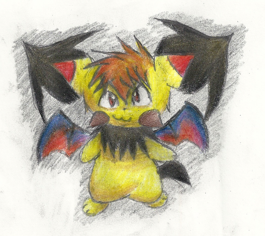Oh wow o_O this is a really cool concept. Ive never seen a Raichu/Pikachu fusion before *_* I really like his cape too. And his scythe tail is amazing >;D