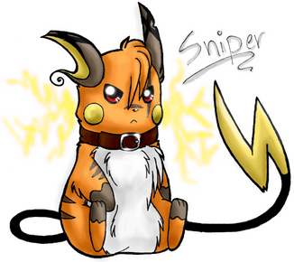 Team rocket is known for various devious acts. Raiyu was part of their "counterfeit evolution stone" projects. Team rocket wanted to make counterfeit evolution stones that look and seem like the real thing. After many failed attempts the project was discontinued. However while the experiment was active many stones were faulty and caused partial evolutions. Sometimes partial evolutions caused genetic imbalances restructuring the pokemon differently. Due to the incapability of some of these partial evolutions some pokemon um.... died? (God dam it! I didn't want to say that!!! T_T ) Raiyu's partial evolution was not too extreme and as a result now has a left Raichu ear and the tail of a Raichu. However the partial evolution caused a slight genetic imbalance in his tail tip leaving it permanently metal. (Not to mention in the shape of a scythe!)