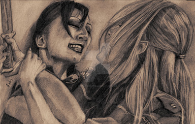 This is the beautiful *RikusWorld and *icequeenserenity I drew this with a reference photo of them. I took the photo, and I thought they were so great I wanted to draw it as well. <3 These girl are amazing!!Prismacolor premier set, pencil, charcoal.