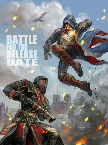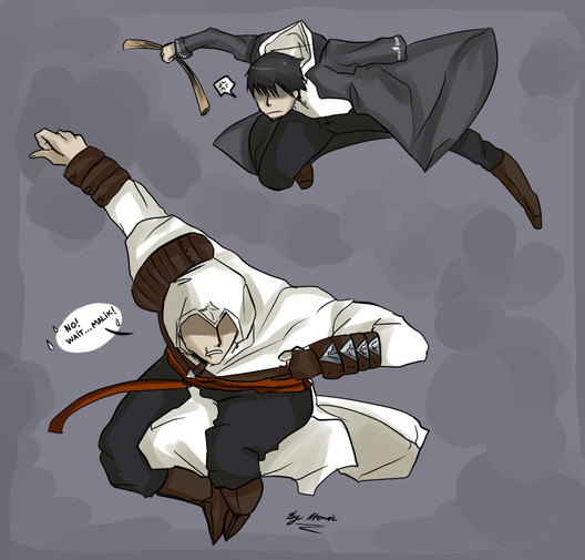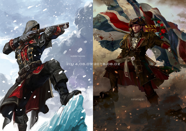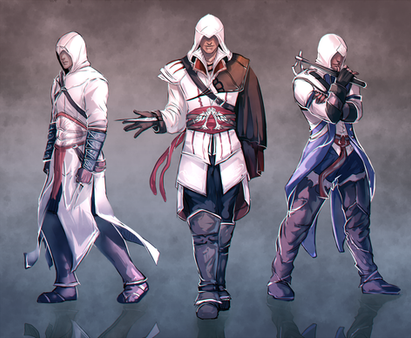 Fan art for my friend Sunny’s Assassin’s Creed AU game Alpha Dislocation.Altair and Ezio’s costumes were designed by her.