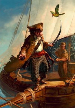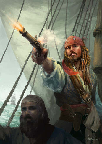 Awesome! You captured Sparrow's personality perfectly. He is always wondering about with rum in his hand. I love the sky, too.
