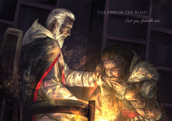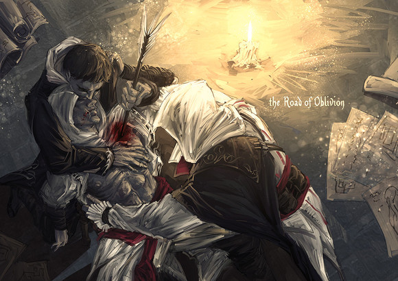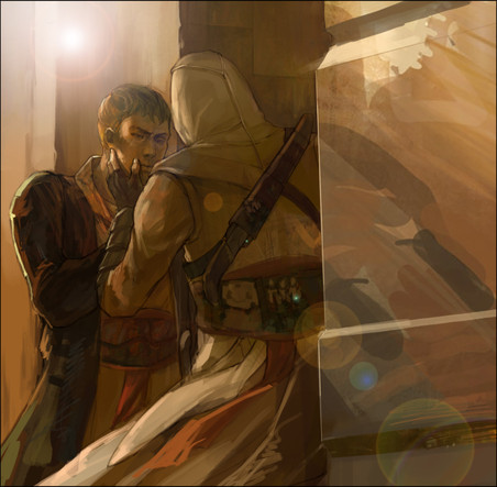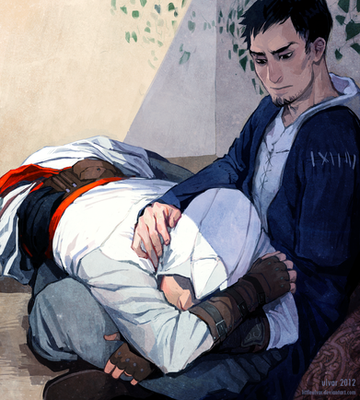 Ezio hugs Altair while in sleep.Ezio: Baby did you read Secret Crusade?
