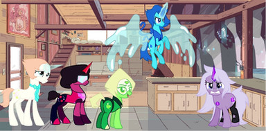 Previously called "Pearl/Dewey on horseback"...and Amethyst; she insisted on being a horse. Bill's a little creeped out by the shapeshifting.