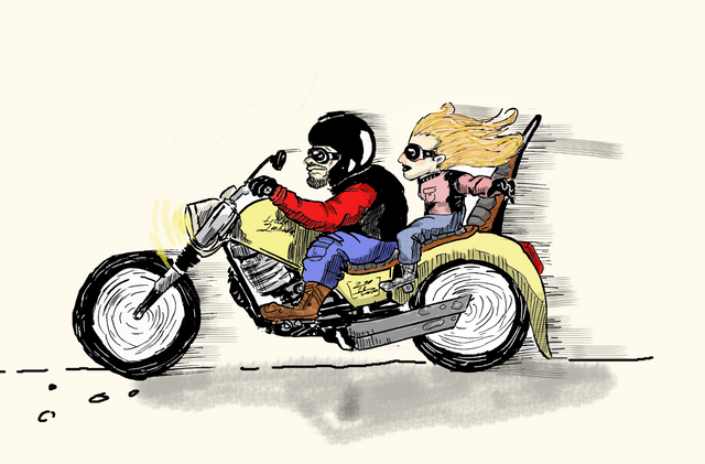 this is so beautiful! the perspective and the way the wind is blowing through their hair really gives this a sense of movement. and that motorcycle is so good 😍