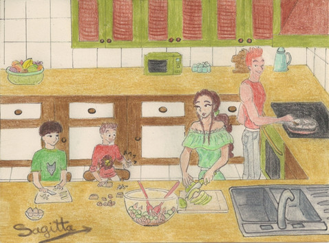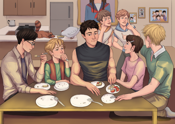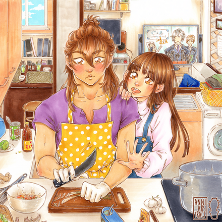 Aw this is such a sweet piece! Mamoru and Hana are so sweet cooking together! I love this!