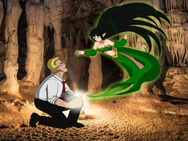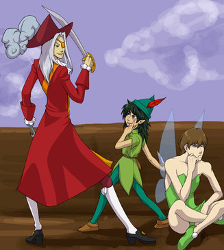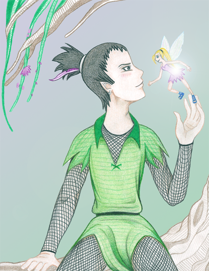 Very few of my watchers will know who these characters are... >> Kariana (the blonde girl) has a huge obsession with mythology--especially fairies... so my witch Gabrielle decided it would be hilarious to turn Blade into one... which... he is very unhappy about.